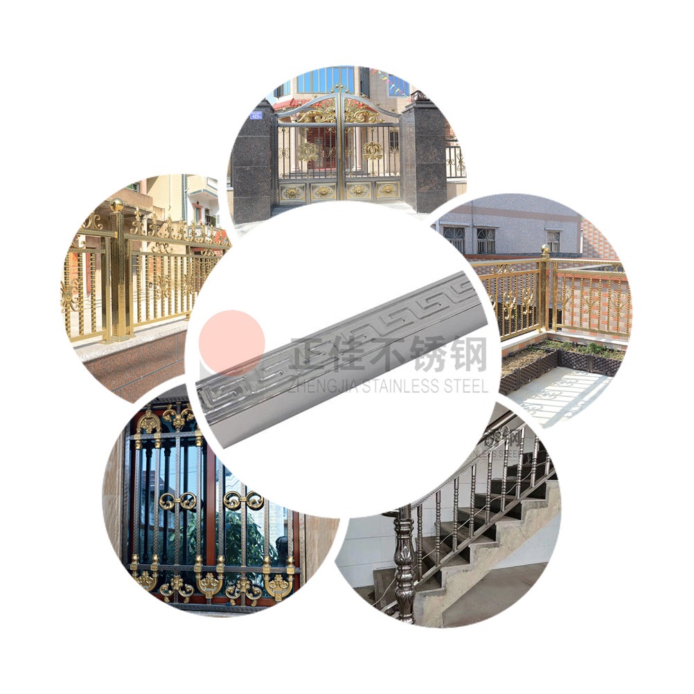 本款產品采用優質304不銹鋼管作為原材,進行輥壓工藝壓出出回形花紋,視覺效果爆棚,可應用大門,欄桿,圍欄,防盜網等裝飾領域。